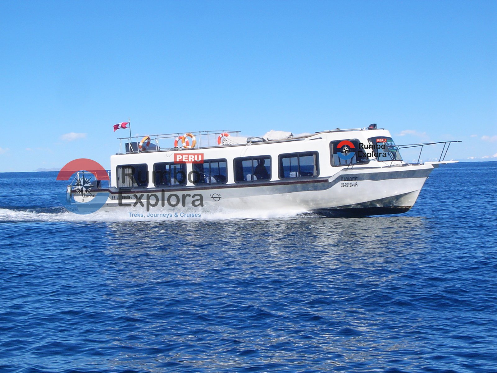 Rumbo Explora is operating with two speed boats that have 40 & 20 comfortable seats, velocity of 26 knots + GPS + radio communication + telephone charger + night navigation lights + compass + oxygen & first aid kit + life jackets + lifebuoy + toilet + carpeted floor + panoramic windows, comfortable seats, sofa, potable cooler, fire extinguisher and insurance policy. From the technical point of view, the safe, and panoramic Speed boats in lake Titicaca (Peru) have legal permits from the Peruvian Navy and with certificate of Accident Insurance Transit SOAT, besides the vessel has Insurance Policy to all risks in record exclusive for foreign.